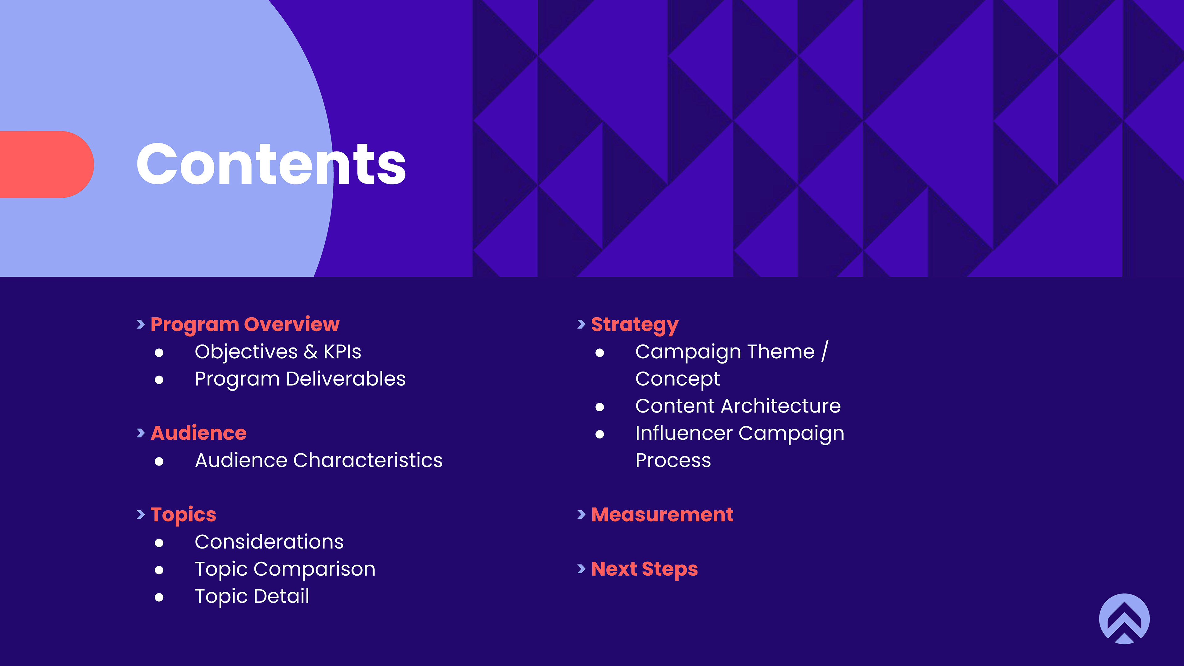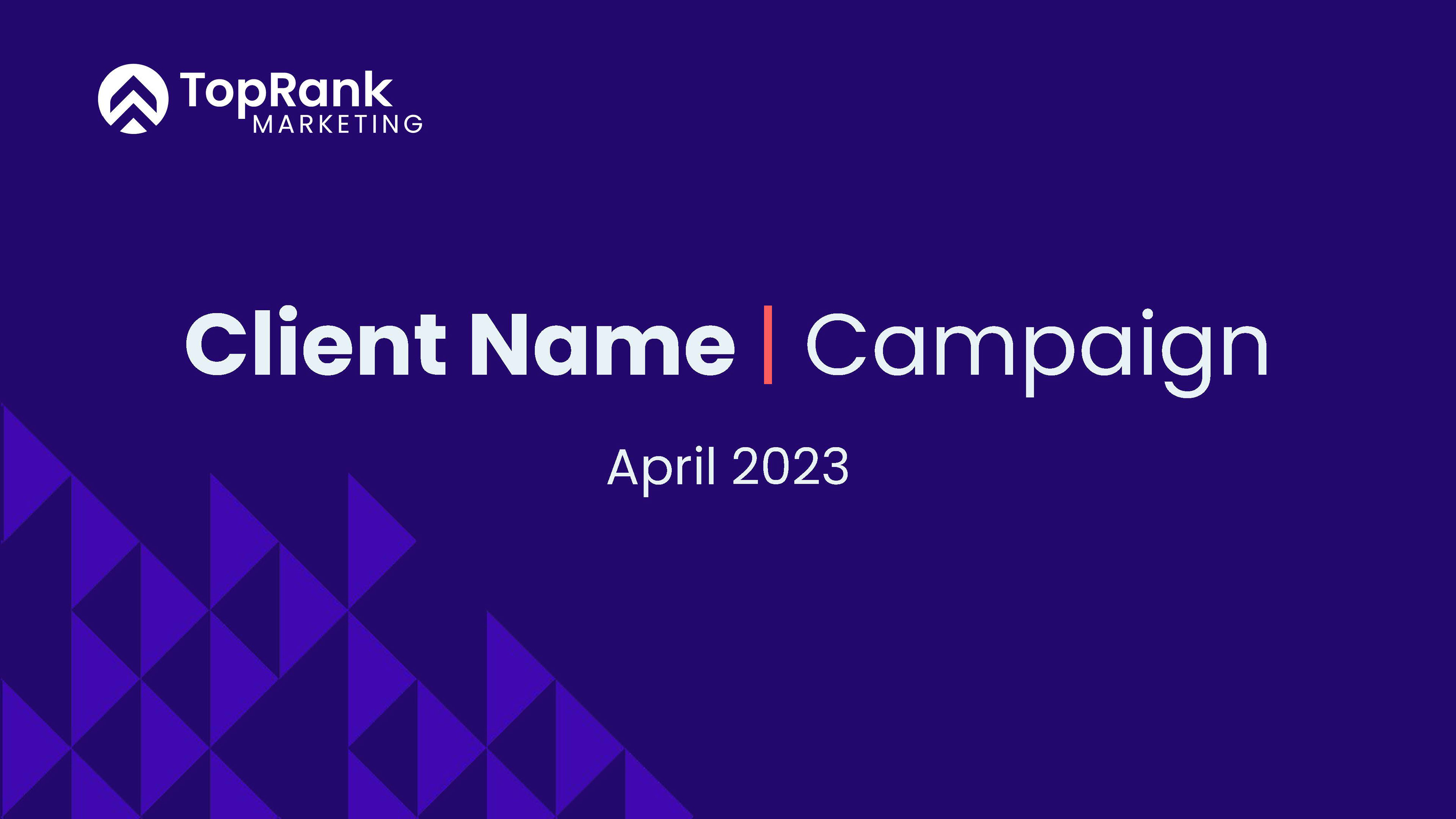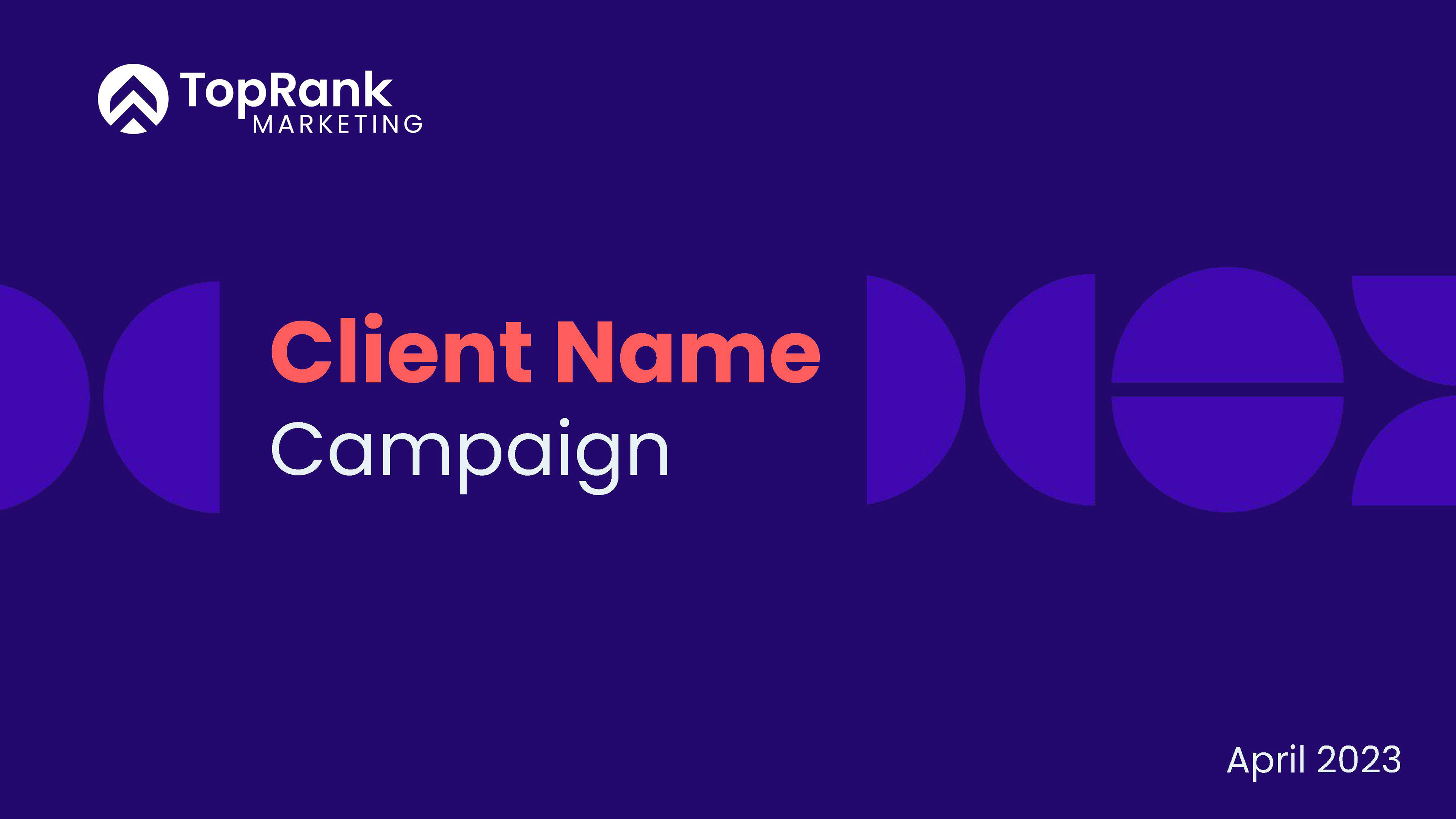 TopRank Marketing needed a dialed in presentation template after a brand redesign, with the added goal of extending their brand language. I partnered with creative leadership to explore concepts and build out a template and set of assets that would set them up for success when pitching to new and existing clients.