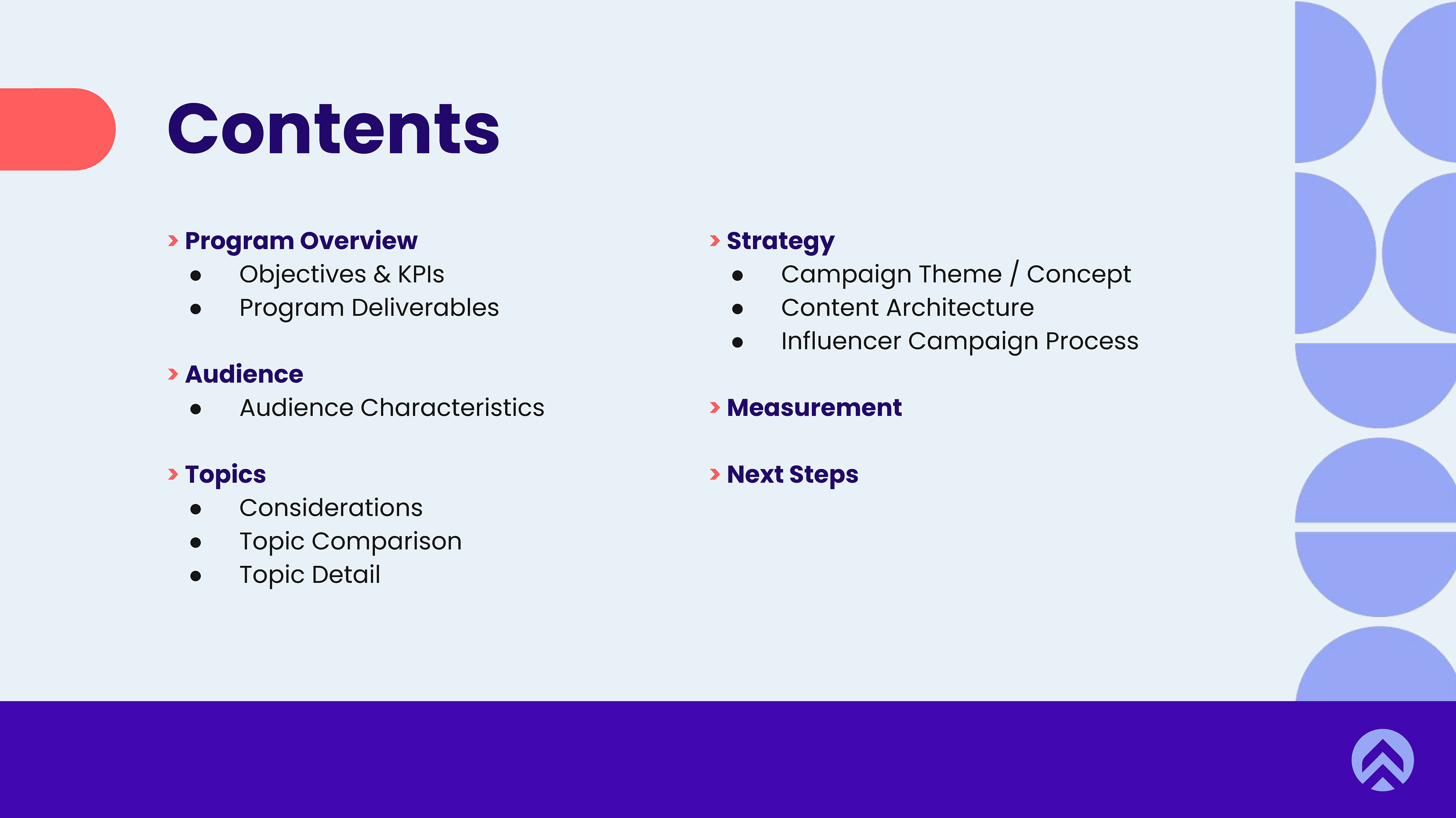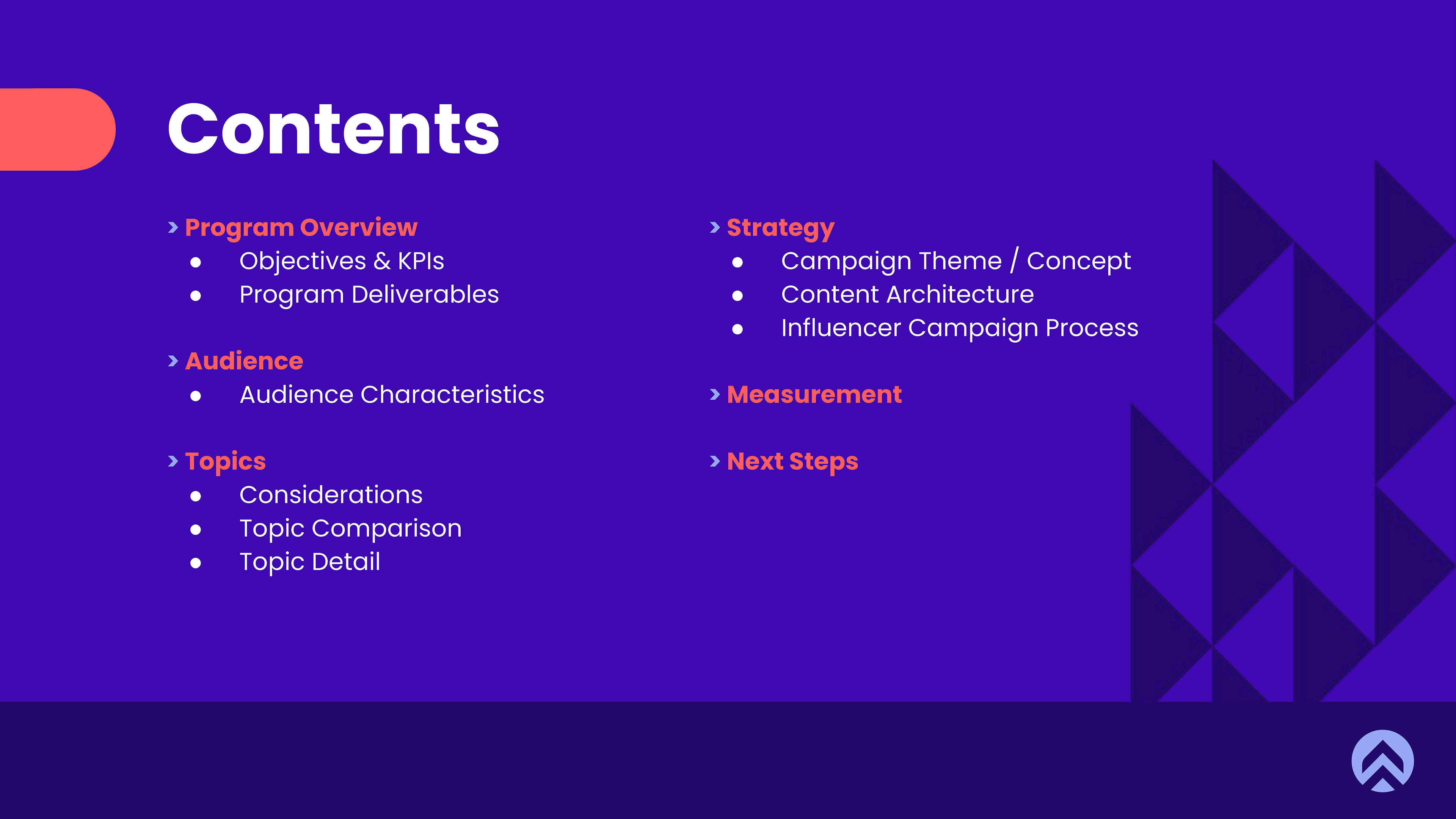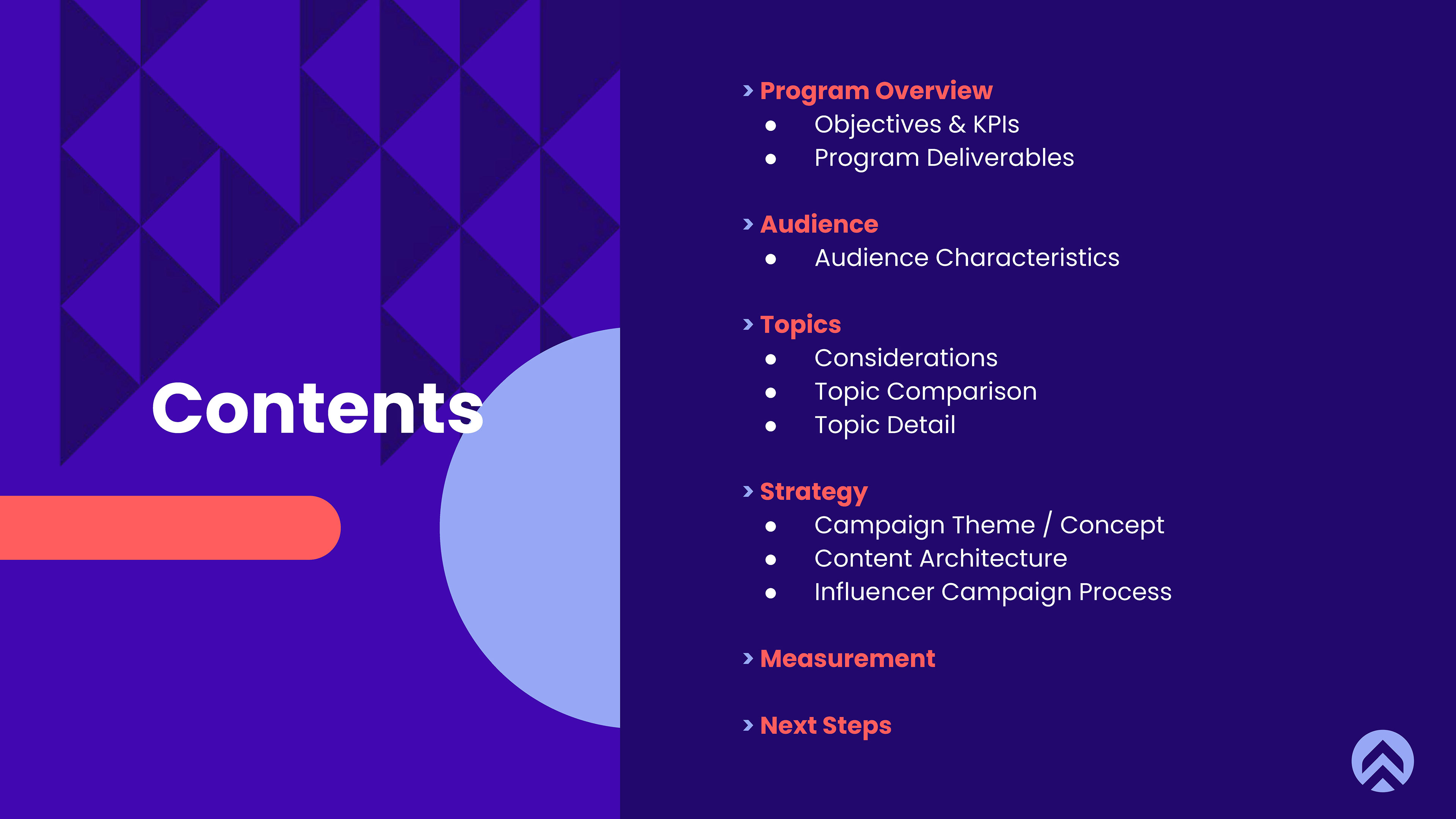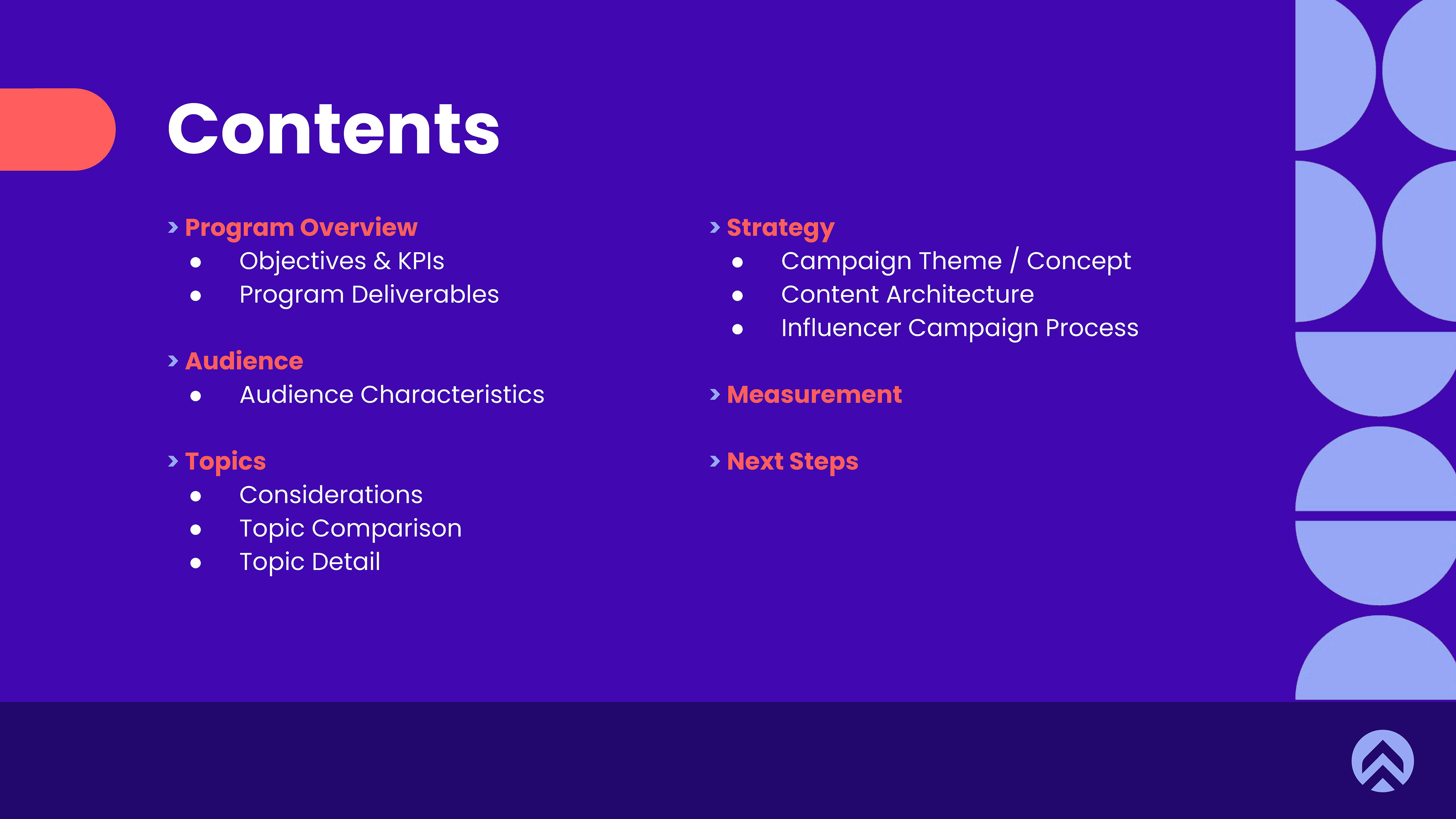 TopRank Marketing needed a dialed in presentation template after a brand redesign, with the added goal of extending their brand language. I partnered with creative leadership to explore concepts and build out a template and set of assets that would set them up for success when pitching to new and existing clients.